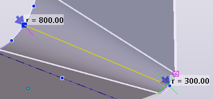 При создании цилиндрической гнутой пластины можно ввести радиус для пластины. В случае конической гнутой пластины можно ввести два радиуса. Если не ввести ни один из радиусов, Tekla Structures использует при создании гнутых пластин радиус изгиба по умолчанию. Этот радиус изгиба можно впоследствии изменить.