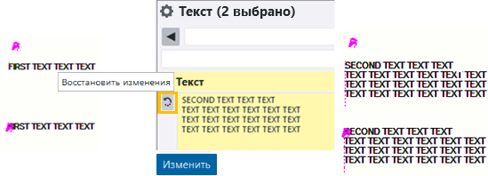 Можно выбрать и восстановить несколько идентичных текстовых объектов. Кроме того, изменения в каждом отдельном текстовом объекте сохраняются в кэше и могут быть восстановлены для соответствующих текстовых объектов.