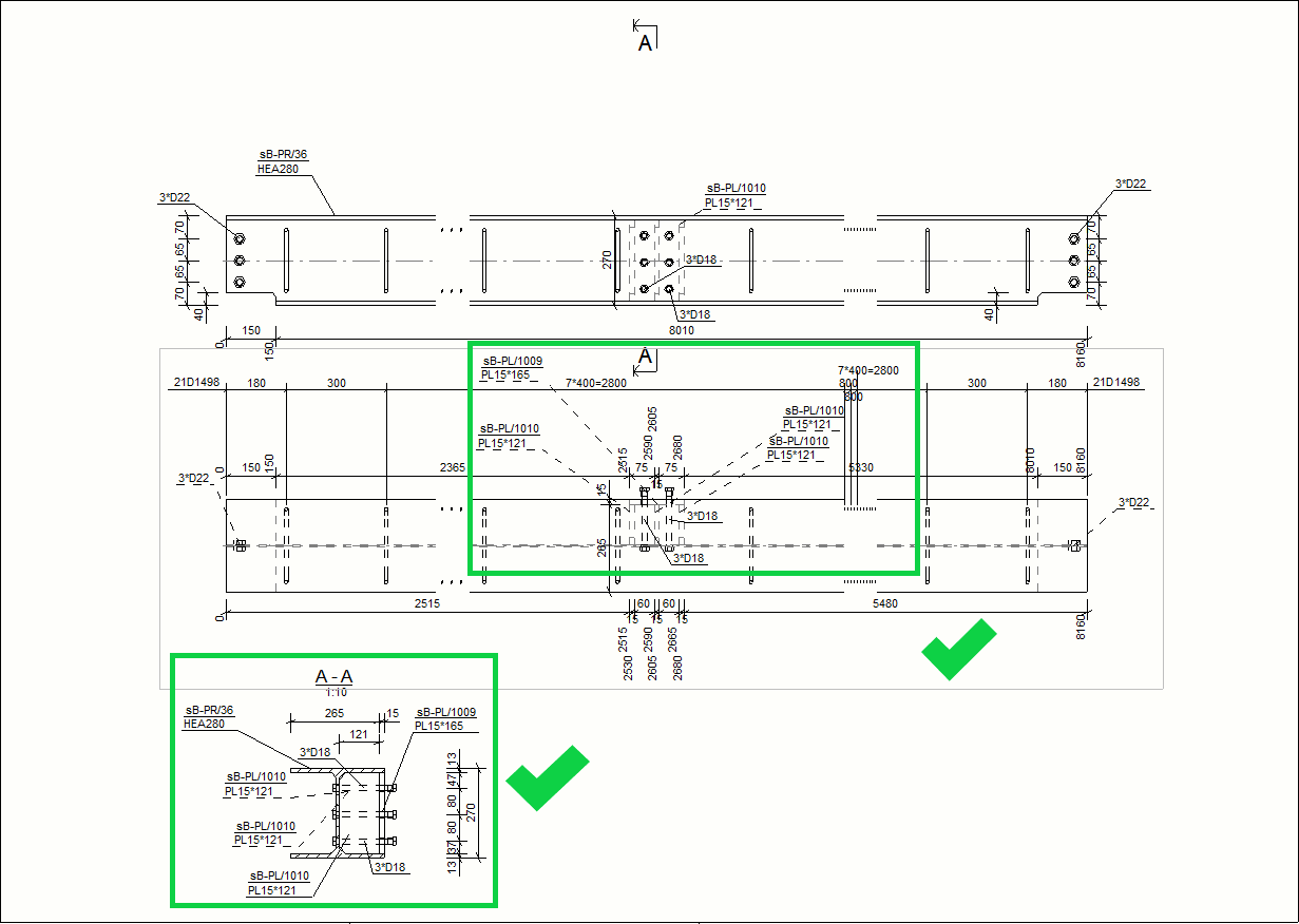 - Мы усовершенствовали логику размещения размеров и механизм, который позволяет избежать наложения размеров на другой текст. Теперь размеры на клонированных чертежах размещаются так же, как были расположены на чертежах шаблонов. Мы также улучшили логику простановки размеров объектов болтов при обновлении чертежей. Ранее размеры на клонированных чертежах не всегда размещались в соответствии с исходной схемой, используемой на чертеже шаблона. В результате приходилось тратить дополнительное время на перемещение размеров в соответствующие места.