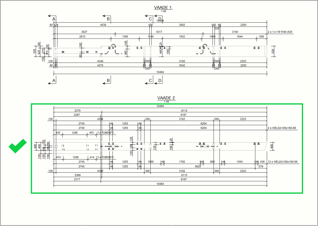 В Tekla Structures 2025 усовершенствовано клонирование и обновление чертежей, в частности, размещение размеров и видов чертежа.