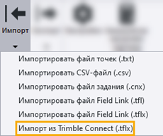 Новые команды импорта и экспорта позволяют без усилий передавать данные разбивки из/в Trimble Connect, чтобы обеспечить беспрепятственный обмен автоматически обновленными файлами. Данные разбивки импортируются и экспортируются в формате Trimble FieldLink .tflx.