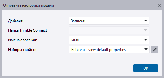 Теперь можно легко определить настройки для отправки модели Tekla Structures в проект Trimble Connect в виде файла .tekla.