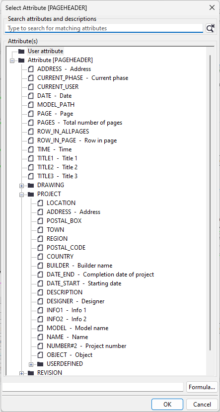 Мы добавили в верхний колонтитул страницы несколько полей значений и атрибутов: PROJECT.NUMBER, PROJECT.NAME, PAGE и DATE.