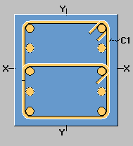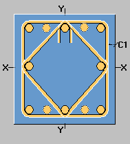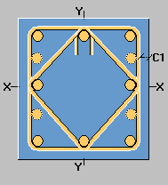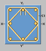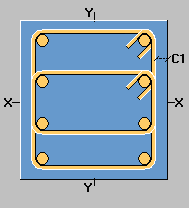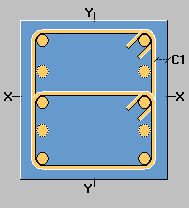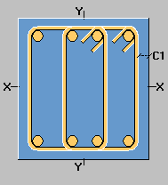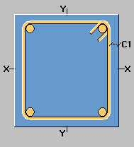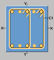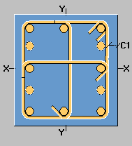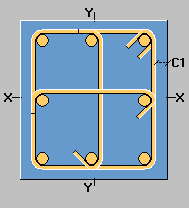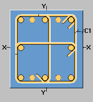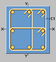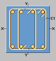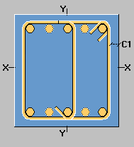 First select the desired tie reinforcement pattern from the list box. There are 16 predefined patterns to choose from. The longitudinal reinforcing bar selection will affect which of these patterns can be used. The component will verify that the primary tie configuration correlates with the primary longitudinal reinforcement configuration. Furthermore, the location or stirrup in section may depend on the location of longitudinal bars (e.g. 8-bar X-X).