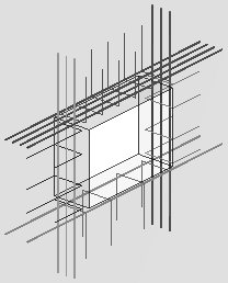 Компонент Армирование проемов в стенах и перекрытиях (84) создает отверстие в бетонном перекрытии или стене и армирование вокруг этого отверстия.