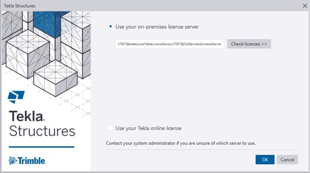 27007@EnterpriseTeklaLicenseServer;27007@OnDemandTeklaLicenseServer