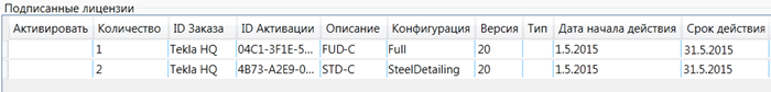 В области Подписанные лицензии на вкладке Лицензии отображается информация о лицензиях, которые может использовать ваша компания или организация. Здесь также можно активировать лицензии.