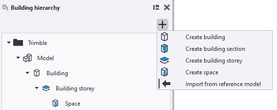 Building hierarchy has an improved hierarchy structure. You can now create building sections in a building to more easily handle complex projects. The hierarchical structure now follows the IFC spatial structure, project > site > building > building section > building storey > space. In previous, Tekla Structures versions, building storeys were called levels.