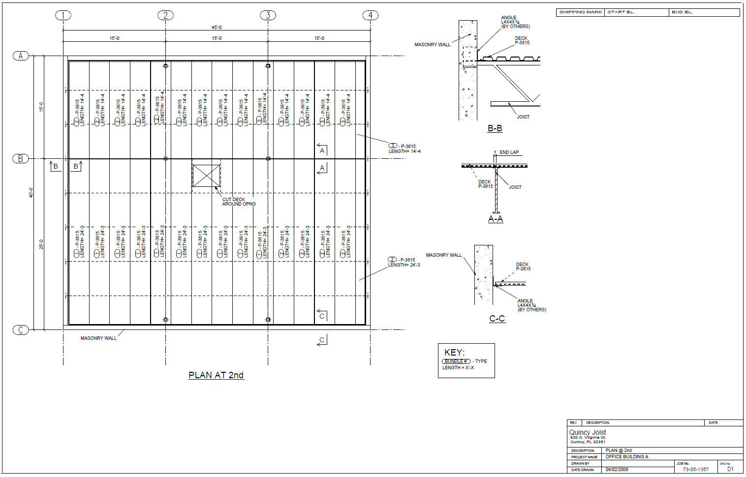 Plan drawings (foundation, floor, deck layout, and anchor bolt plans)