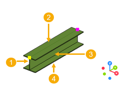 Part faces are represented as if looked from the yellow start handle towards the magenta end handle.