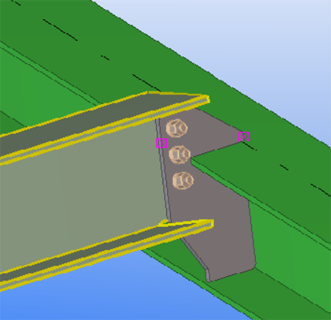 Use the Auto bolt component to bolt parts and nearby parts, shim plates, splice plates, or other plates. Auto bolt follows the part rotation and finds the best rotation so that you do not need to set the work plane. With Auto bolt one bolt group can span many parts, for example, manage a splice as a single group.
