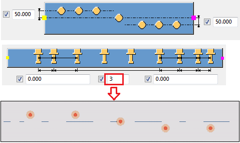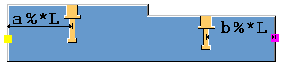 Define dimensions a and b as percentages of the part length. The distances are from the embeds to the part ends. |