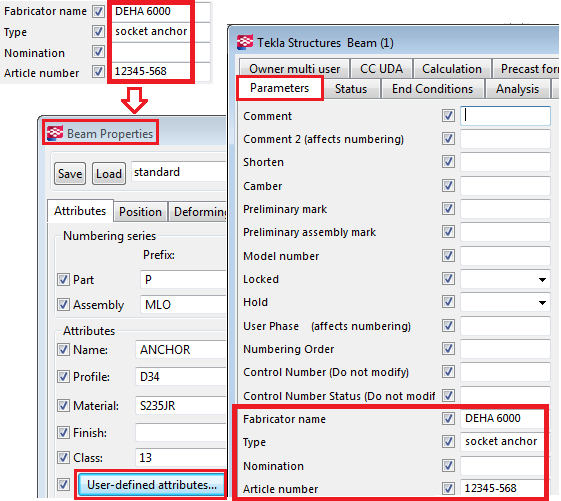 Use the Advanced tab to define UDAs and reinforcing bar properties for the reinforcing bars, hangup bars, special bars and horizontal bars.