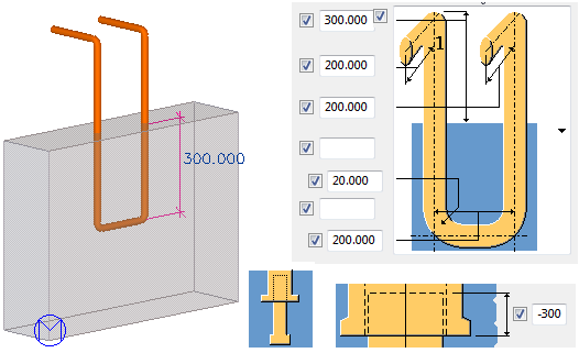 Use the Special bar tab to define additional U-shaped reinforcing bars for the embeds.