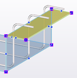 Tekla Structures also shows the leg surfaces. They automatically adapt to the geometry of the parts they are associated with. You can only modify leg surfaces by using their properties or contextual toolbar, not by using direct modification.