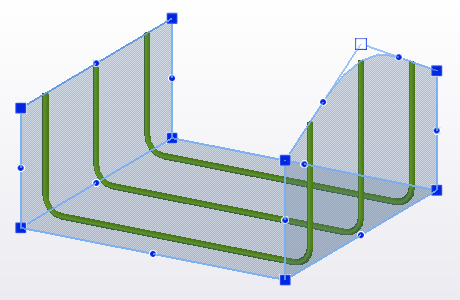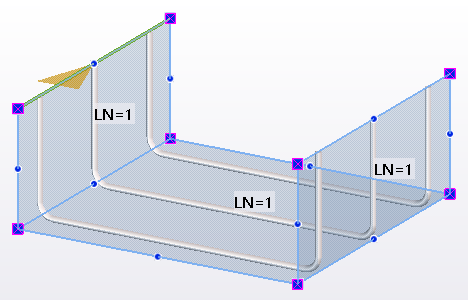 In addition to modifying an entire rebar set, you can make changes to any individual leg face or leg surface. Leg surfaces are especially useful when you reinforce curved or complex concrete structures.