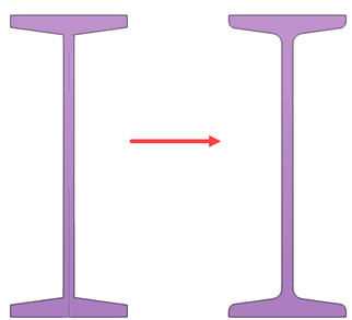 In the following example, on the left, you can see a native type I profile, and on the right the IFC object surface geometry when both advanced options are used: