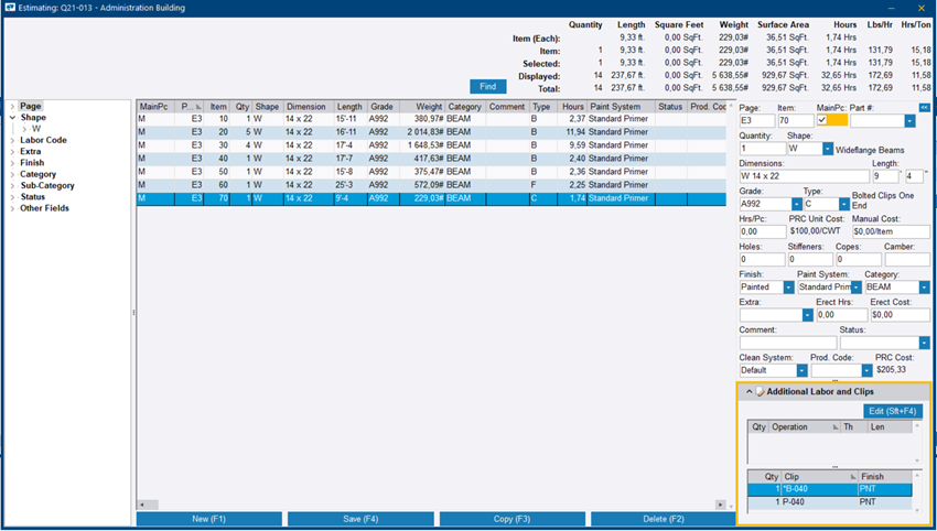 - 在估算对话框中,选择要为其应用额外人工或连接件的对象。
