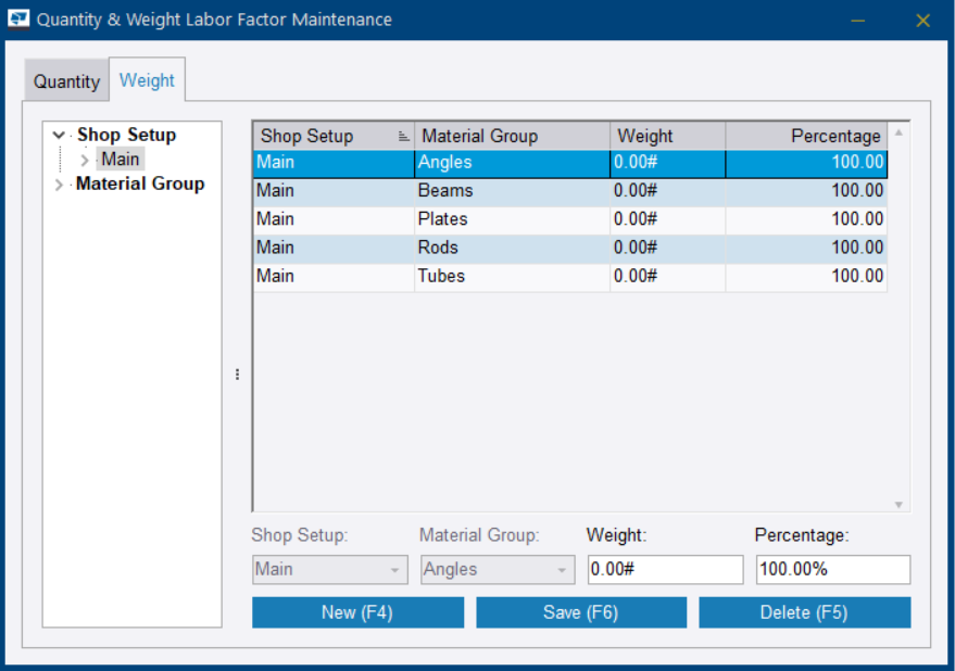 您可以在数量和重量人工系数维护对话框中,按材料组添加、修改和删除这些人工系数。