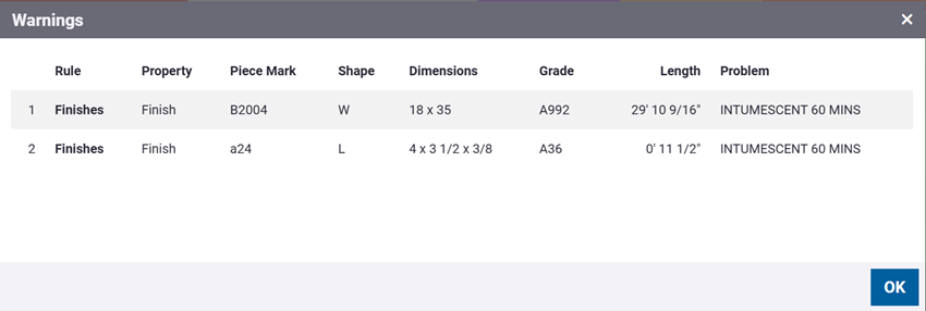 警告对话框将会打开,显示违反的规划规则。