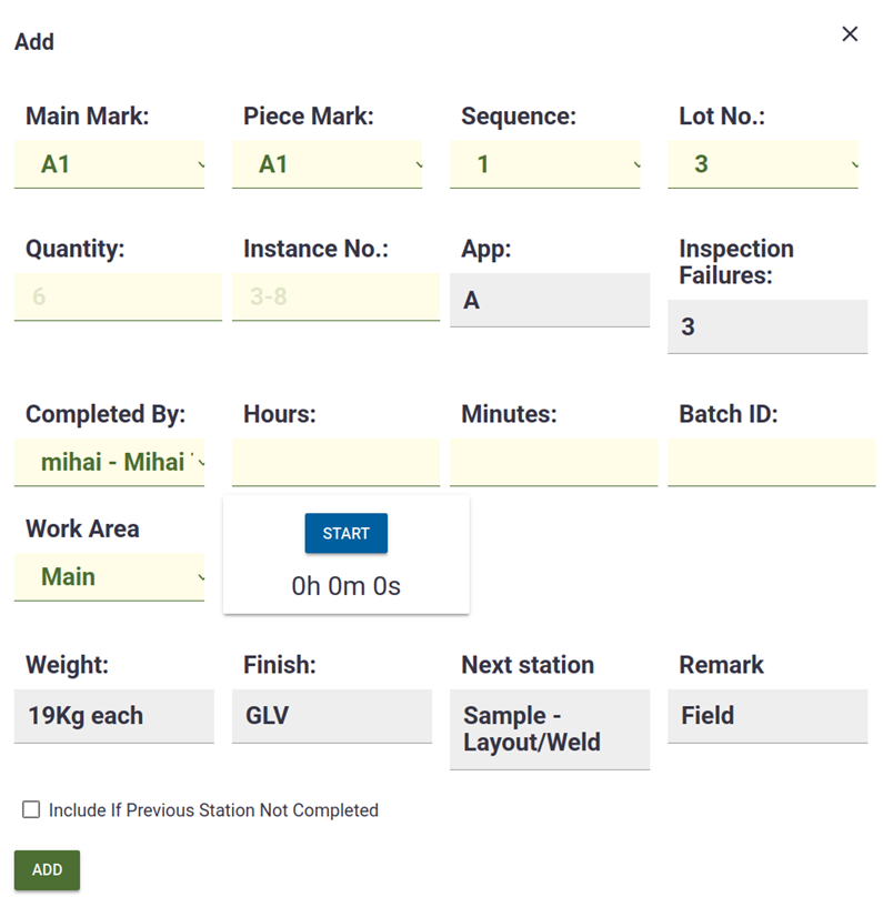 您可以使用计时器跟踪零件。使用计时器时,不必记录或记住每个构件的开始时间。需要暂停时,计时器也很有用,因为您可以直接注销,然后在再次登录时恢复计时器。