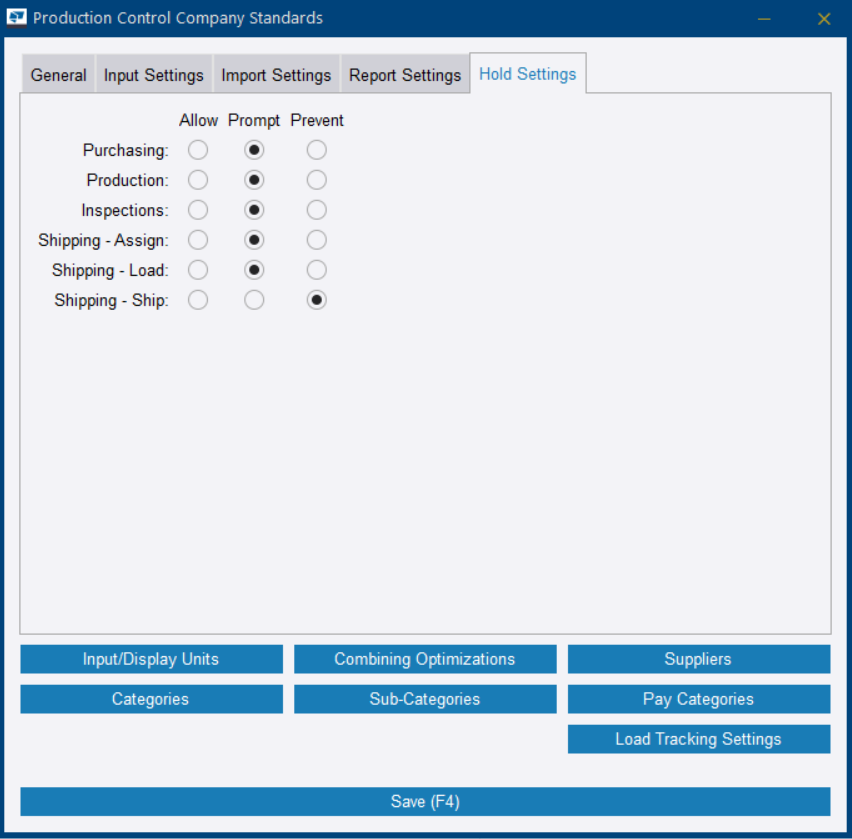 定义用于生产控制的公司标准设置