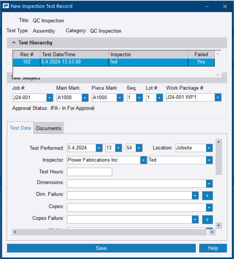 检验测试记录属性
