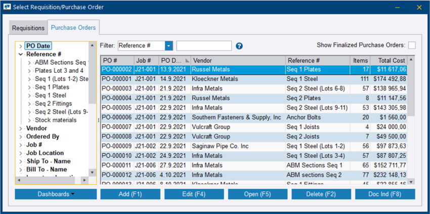 PO #对话框随即打开: