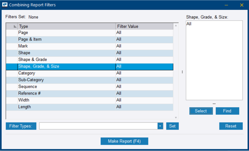 报告过滤对话框随即打开。