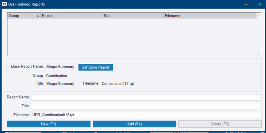 当您选择了基本报告后,该基本报告的文件名将显示在用户定义的报告对话框的底部。