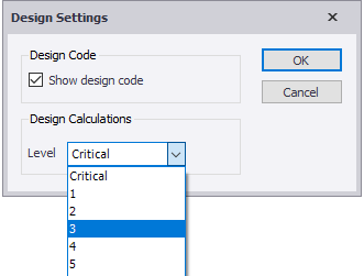 Configure the level of calculation detail, by right clicking on the Design Calculations chapter and selecting Settings from the context menu.