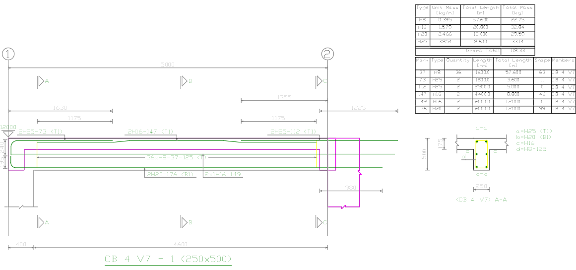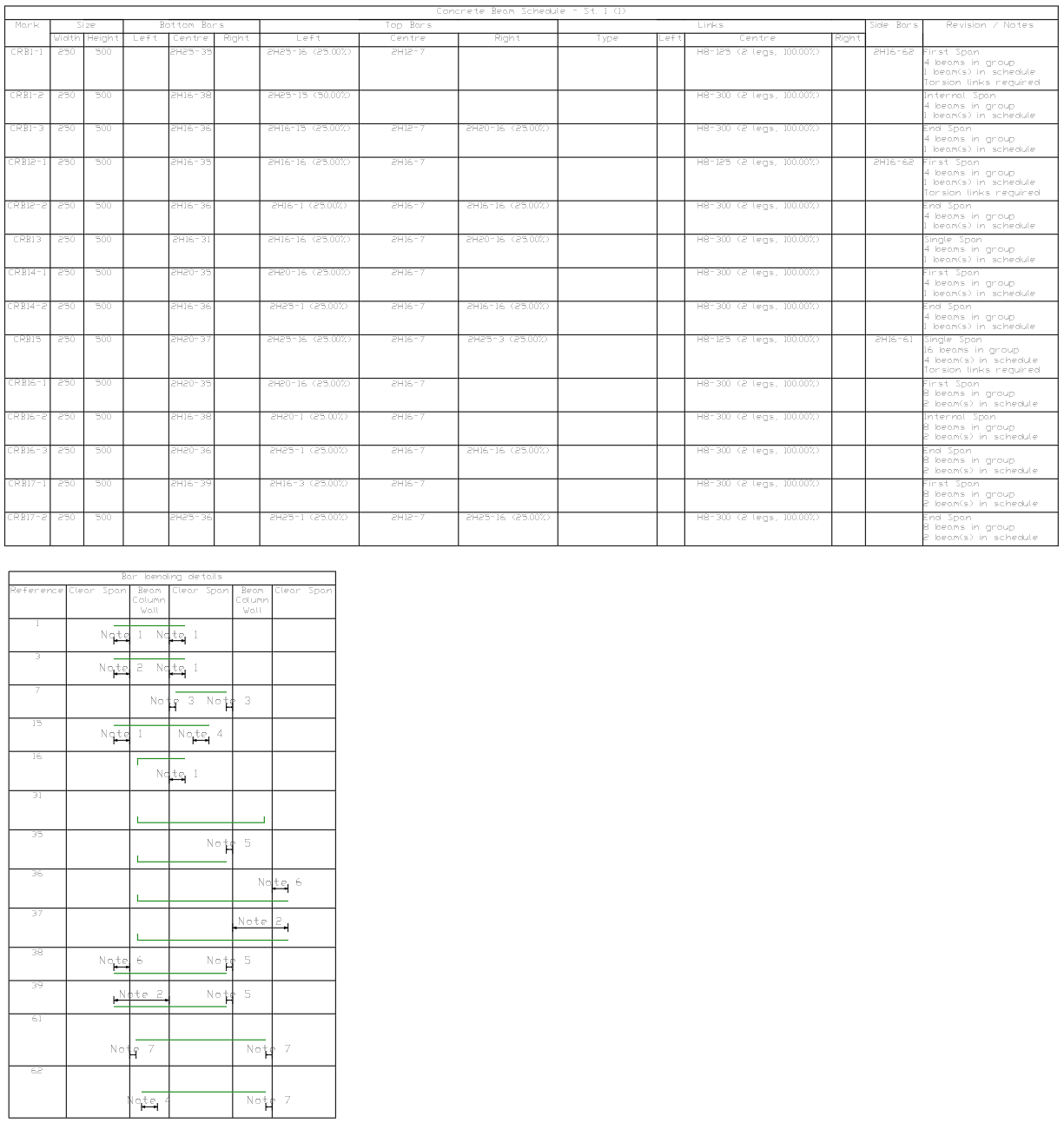 A beam batch drawing showing all the beam details at a particular level is shown below.