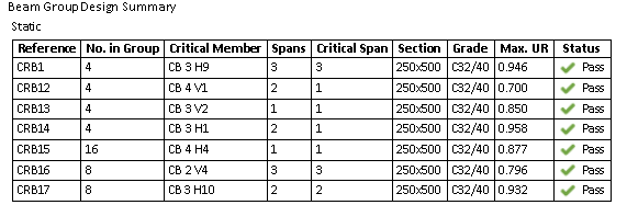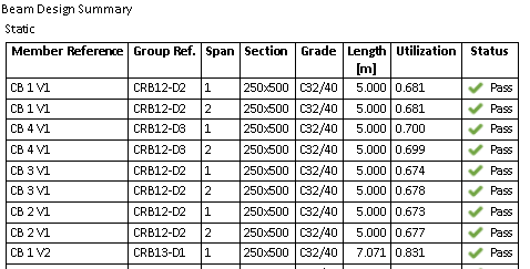Beam Group Design Summary and Column Group Design Summary- these sub-chapters will add tabular group design summaries into the report.