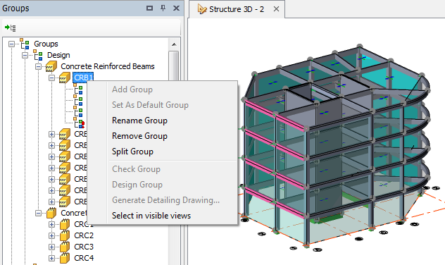 Provided that the concrete beam and column options are checked in Design Settings > Design Groups, the design groups shown in the Groups tab of the Project Workspace will be applied in the beam and column autodesign processes.