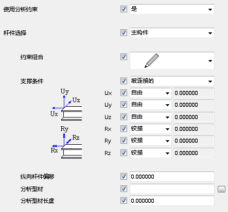 | 纵向杆件偏移 | 了解更多信息,请参见分析零件属性。 |