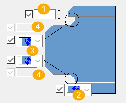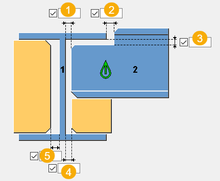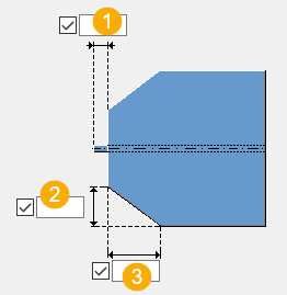 设置焊接预加工切割后的后面的加劲肋的最小厚度。最小值为 2.0 mm。 请注意,如果您定义了双侧焊接预加工,则焊角面厚度集中在加劲肋上。 |