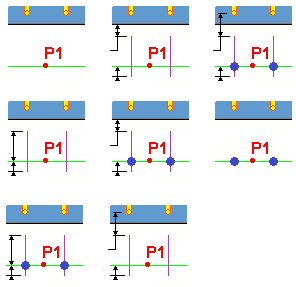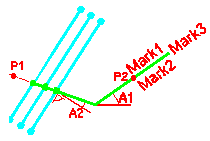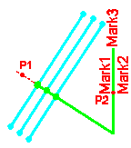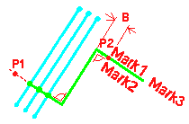 定义钢筋标记的形状。 在描述性选项图片中,P1 和 P2 分别是您选取的第一个点和第二个点。 标记 x 指示标记 1–标记 3 选项卡中定义的标记的位置。 选项包括: 选项 1: