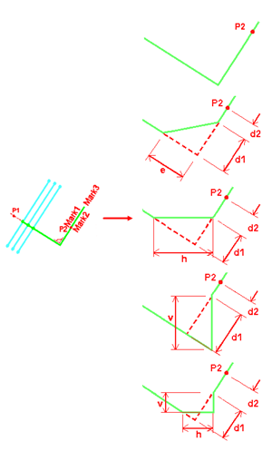 对于具有设置 d1、d2、h、v 和 e 的选项,您也可以影响引出线的形状。 |