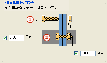 定义螺栓碰撞校核时所需的空间 要检查螺栓是否与截面型材碰撞以及是否有足够空间固定螺栓,可以定义螺栓碰撞校核时所需的空间。 在文件菜单上,单击设置 > 选项。 在选项对话框中,转到碰撞校核设置。 修改螺栓间隙值。 如果框为空,Tekla Structures 将使用默认值 1.00。 d 是螺栓头或螺母直径的较大的值 碰撞校核间隙空间 确保已选中每个框前面的复选框。 如果清除这些复选框,间隙将为零。 单击应用或确认。 注: 如果在螺栓目录中无法找到螺栓头或螺母直径,Tekla Structures 将使用螺杆直径。 另请参见检查碰撞