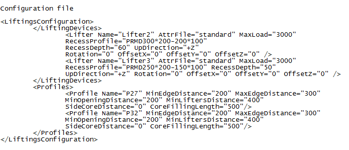 选择其中定义了凹槽、吊装设备、槽钢和灌浆截面和板型材属性的外部 XML 文件。 |