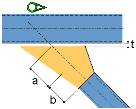 不创建新零件。 次零件通过线切割进行减短。 可以选择将次零件焊接到主零件。 使用尺寸 t 定义板和主零件之间的间隙。 |