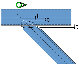 不创建新零件。 次零件通过接合进行减短。 可以选择将次零件焊接到主零件。 使用尺寸 t 定义板和主零件之间的间隙。 |