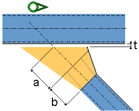 使用尺寸 a 和 b 定义板长。变宽从挤压零件开始,沿着压型板继续。 使用尺寸 t 定义板和主零件之间的间隙。 |