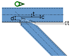不创建新零件。 次零件使用一个接合和一个线切割与主零件相适合。 使用尺寸 c 定义相对于主零件中心线的偏移(默认值 = 15 mm)。 使用尺寸 t 定义板和主零件之间的间隙。 |