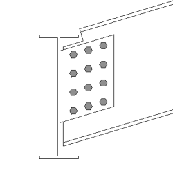 简支剪切板到梁 - 倾斜的次零件。斜梁条件。 使用单剪板(146)。 |