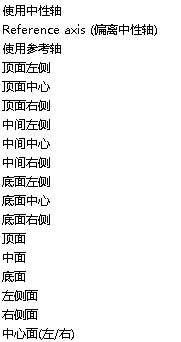 定义分析零件相对于相应物理零件的位置。 零件分析轴的位置定义零件与其他零件相交的位置以及 Tekla Structures 在分析模型中创建节点的位置。 选项包括: