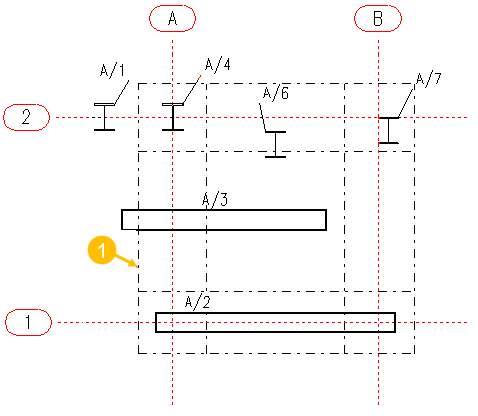 如果构件部分或完全位于容许误差距离外,该代码为轴线标签的组合:A-B。