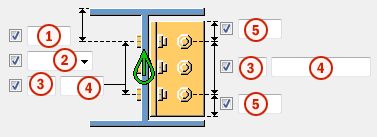 根据螺栓 加劲肋放置在螺栓之间间距的中间。 默认情况下,每两个螺栓之间创建一个加劲肋。 在下面的框中输入中间加强筋的数量。 |