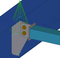 节点板+T 通过在梁的末端焊接一个 T 截面并将此截面通过螺栓连接到主零件的剪切板节点板,将梁或支撑连接到其它梁。主零件通常为 H 或 I 截面,次零件通常为方形或圆形中空截面,但也可以使用槽钢和其它截面。