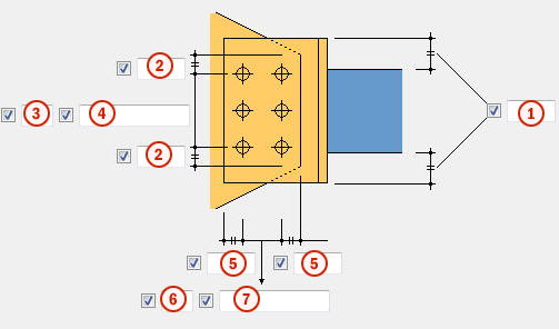 使用螺栓选项卡可以控制将节点板连接到 T 截面的螺栓的属性。
